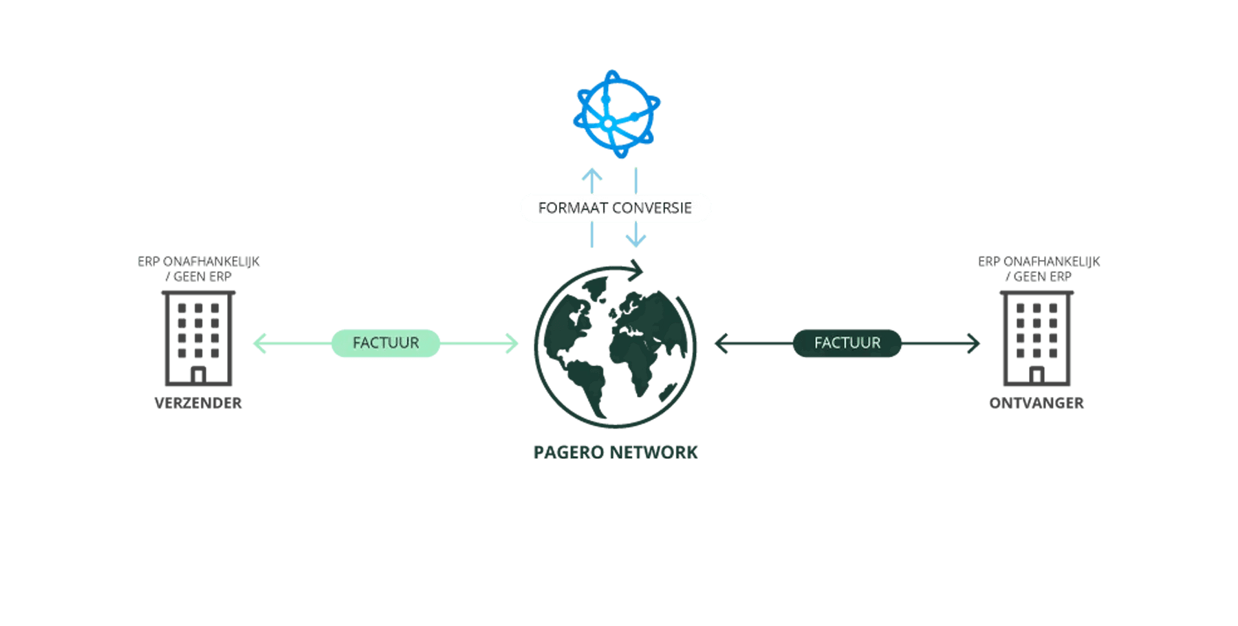 U verstuurt elektronische facturen vanuit elk ERP-/niet-ERP-systeem door verbinding te maken met het Pagero-netwerk. Pagero zet de e-factuur om in het correcte Peppol-conforme formaat en stuurt de e-factuur naar de ontvanger. Klanten kunnen alle facturen van leveranciers elektronisch ontvangen door hun financiële systemen te integreren met het Pagero-netwerk.